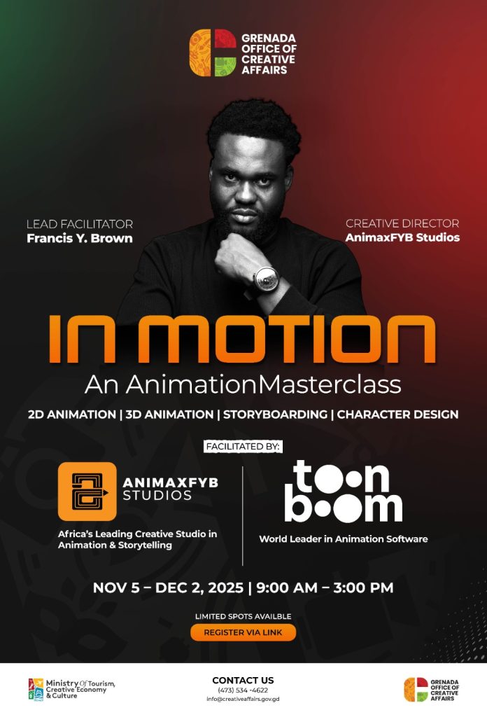 Running from 5th November to 2nd December, the program will bring world-class facilitators onsite in Grenada, bridging knowledge directly from Africa to the Caribbean. On the animation front, AnimaxFYB Studios will be joined by its esteemed partners, Toon Boom Animation the global leader in 2D animation software ensuring participants gain industry-standard expertise from the very best.