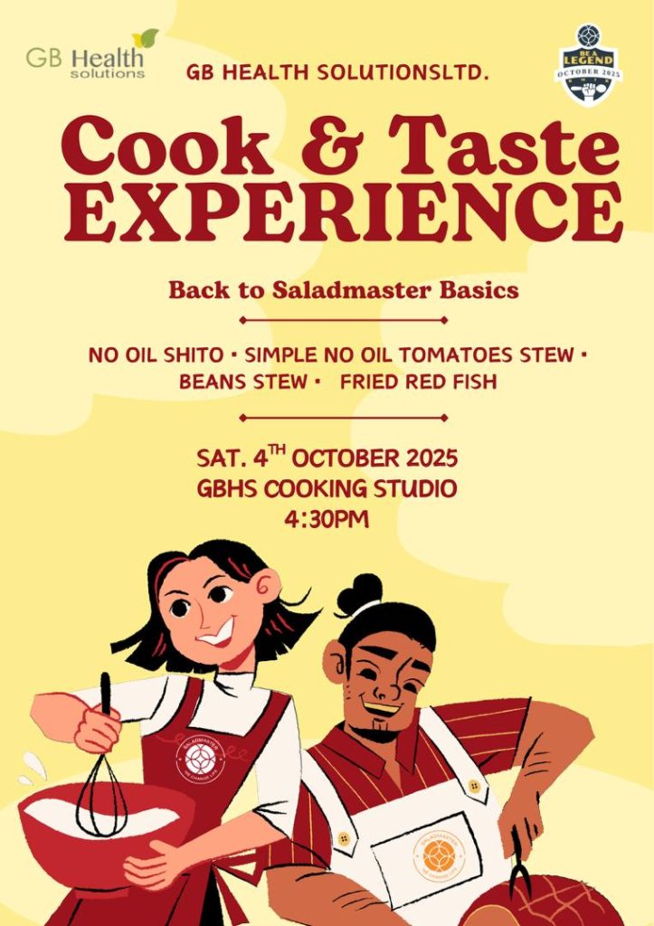 This Saturday, 4th of October, 2025, they celebrate the Launch of SALADMASTER’s 80th Anniversary, and in that mood, the brand will like to invite you to their ‘COOK AND TASTE’ event at 4:30 pm GMT, at the GBHS Cooking Studio (No. 6, 6th Link, Volta lane, Accra, Ghana).