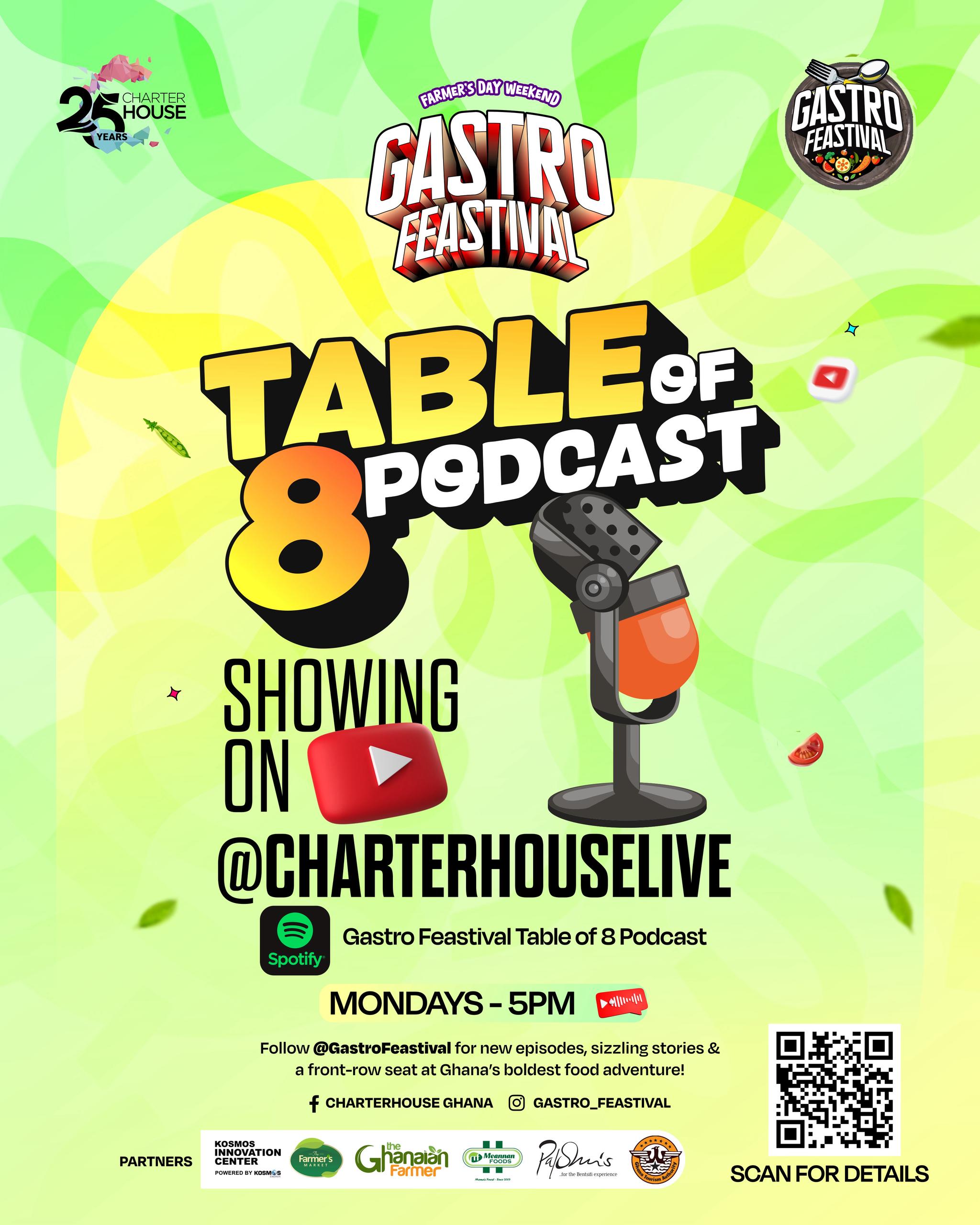 Before the grand feast, the dialogue has already begun with the Gastro Feastival “Table of 8” podcast series — From Farm to Feast. Each week, farmers, investors, chefs, and policymakers gather around the table to ignite conversation, exchange insight, and explore innovation across Ghana’s food value chain.